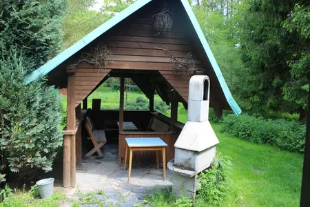 Chata je samostatně stojící objekt mimo parcely autokempu vzdálený cca 300 metrů od restaurace - soukromí je tudíž jen hlavně výhoda. Objekt je po celkové rekonstrukci. Má vlastní venkovní pergolu s grilem a ohništěm. Ubytování je možné ve třech pokojích o celkové kapacitě 10 lidí. Nachází se zde také kompletně zařízená kuchyně s jídelnou (el. sporák s troubou, lednice, mikrovlnka) A je zde koupelna a toaleta. Cena této vilky 4000.- Kč za noc. 4 noci a víc 3500.- Kč za 1 noc. Při ubytování jen na jednu noc cena 5500,- Dále zvlášť k ceně za noc účtujeme 10,-/ 1KW elektřiny. Nelze topit dřevem.